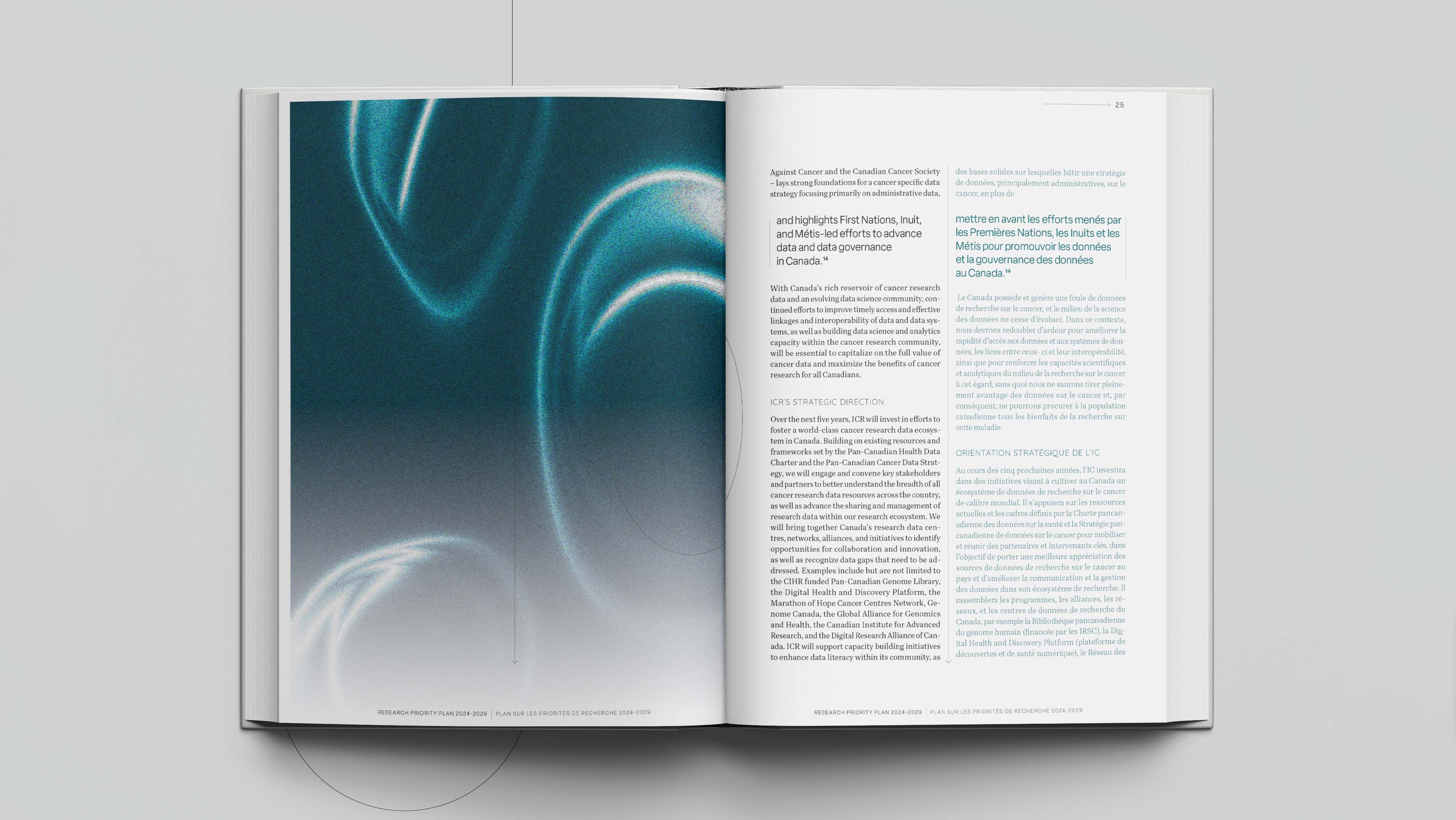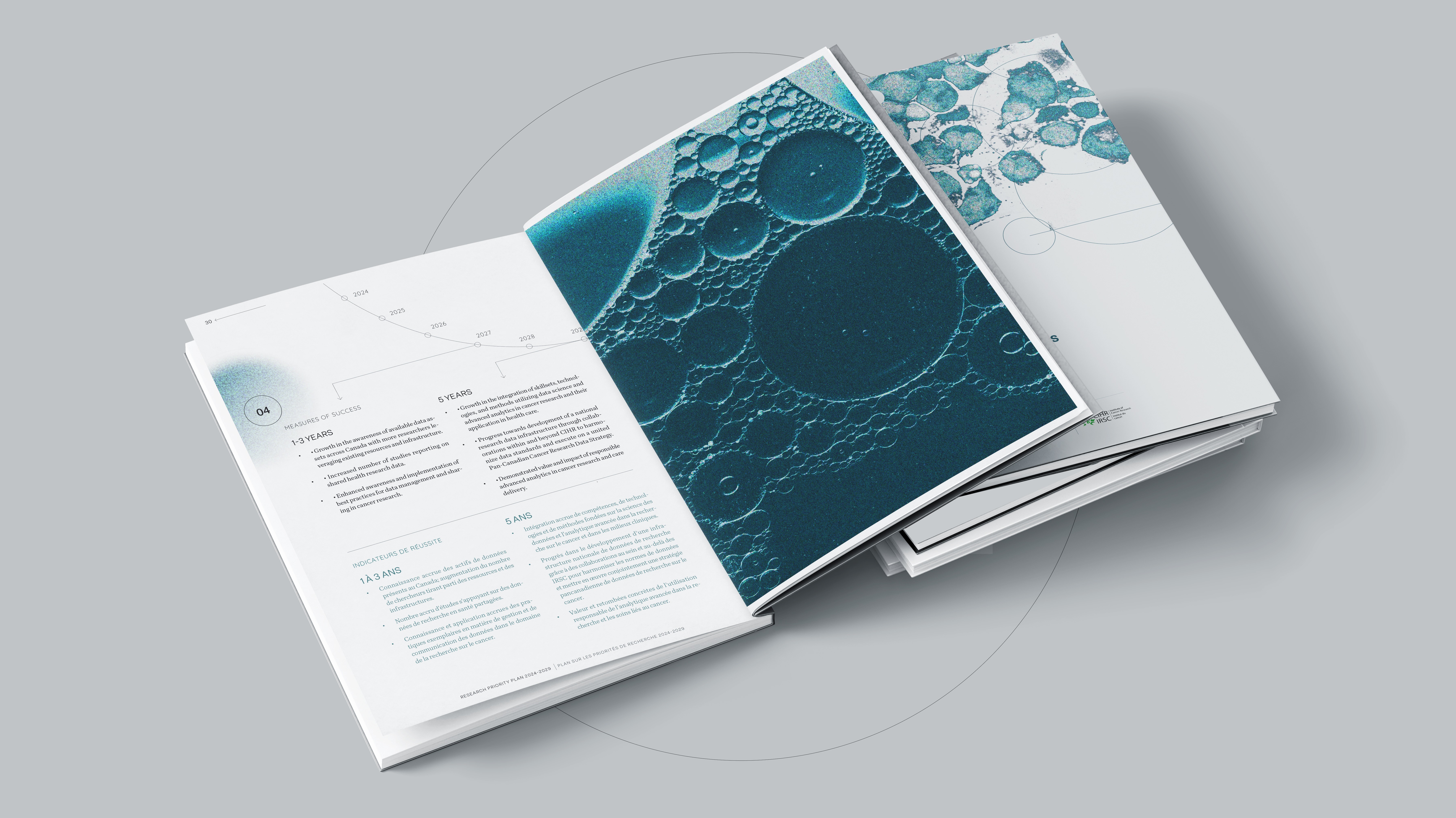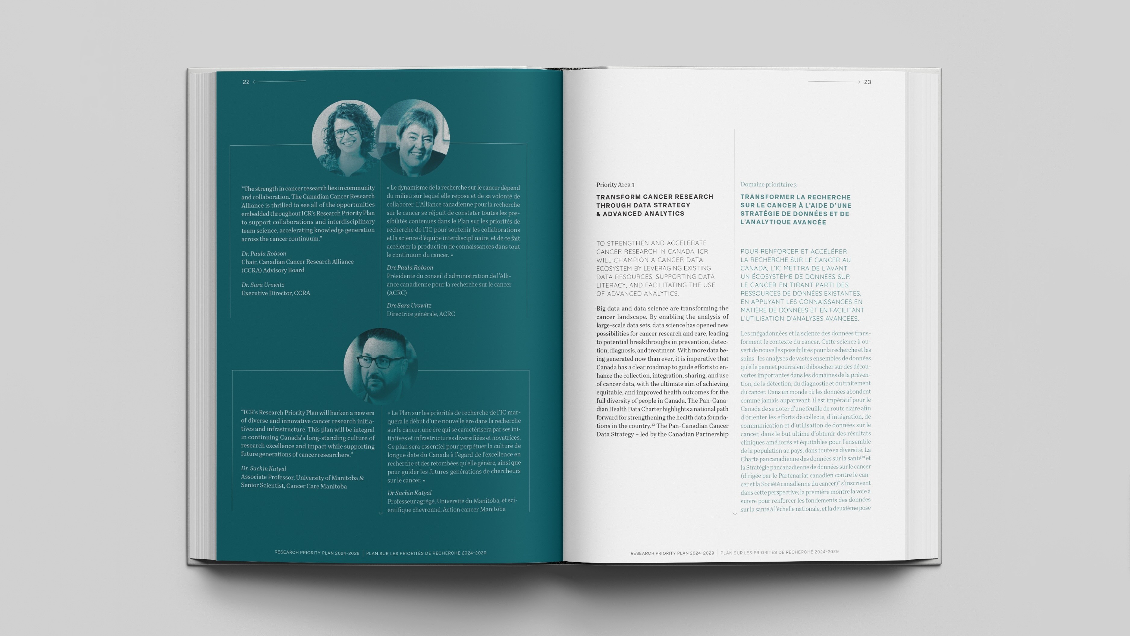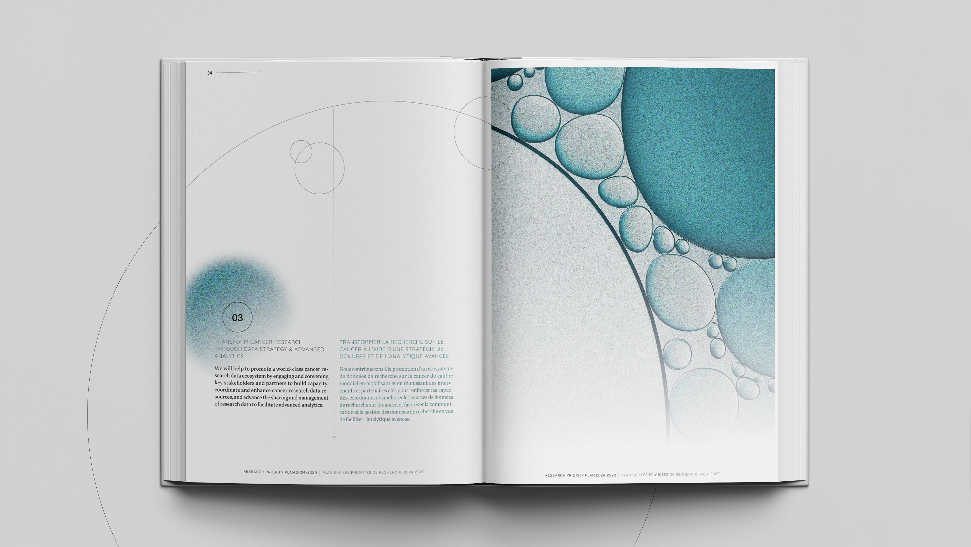 The challenge involved creating a visually engaging, multi-page document with accessible typography, engaging art direction, balancing different word counts between English and French, and ensuring a smooth user experience.